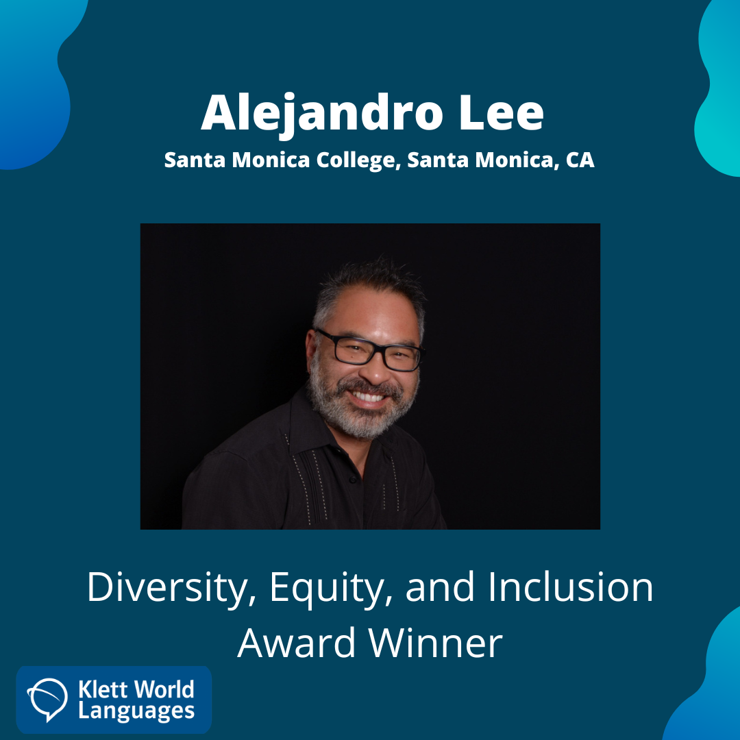 Professor Alejandro Lee is the 2024 recipient of the AATSP Award for Excellence in Diversity, Equity, and Inclusion (DEI). Dr. Lee teaches Spanish at Santa Monica College, in Santa Monica, CA.